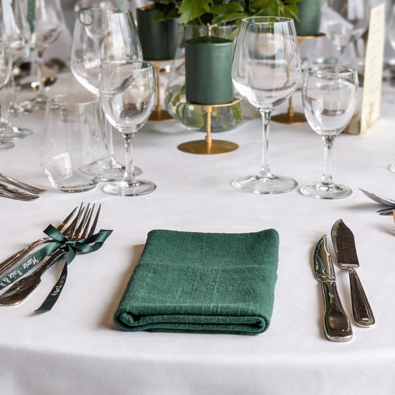 Apportez une touche élégante à votre table avec cette serviette vert forêt. Sa teinte profonde sublime instantanément votre décoration et s’intègre parfaitement dans une ambiance mariage chic, champêtre, rustique…
